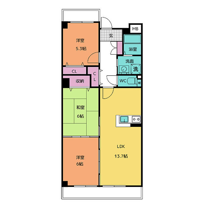 パル住吉 3LDK/2階