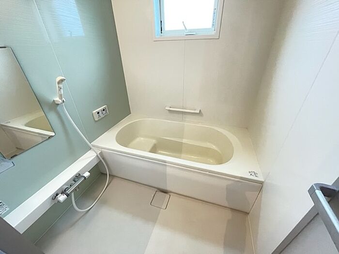 設備が充実で、お風呂も広くてウキウキですね!綺麗なアパートです。明るい開放的な空間です。