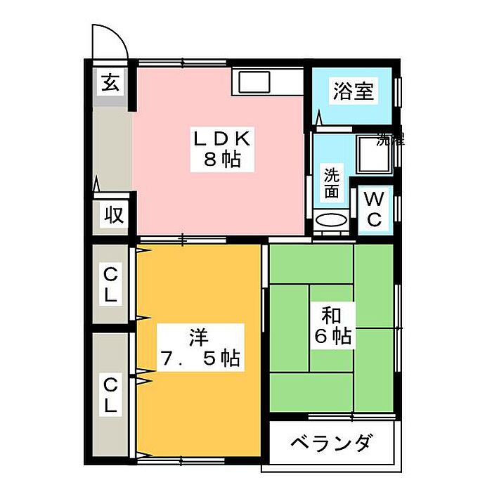 サンハイツ中矢部 2DK/1階