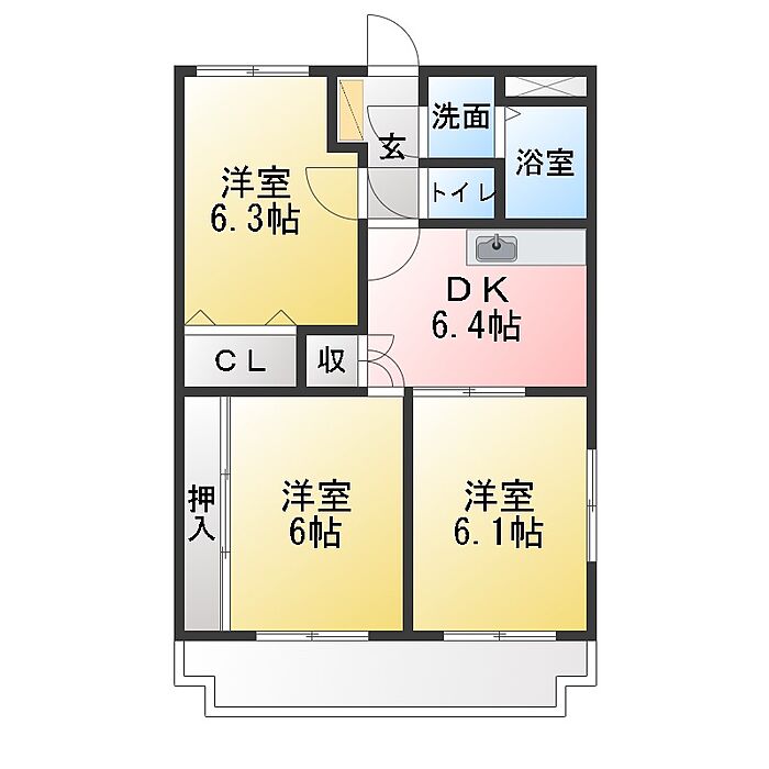 ラ・グリシンヌ 3DK/3階