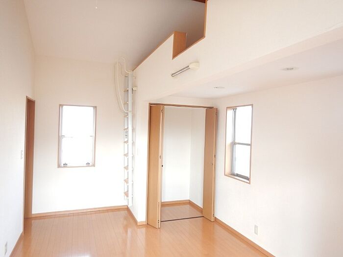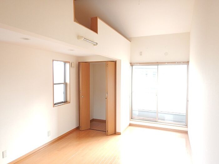 天井が高いお部屋で開放感あります。広いロフトもあります。