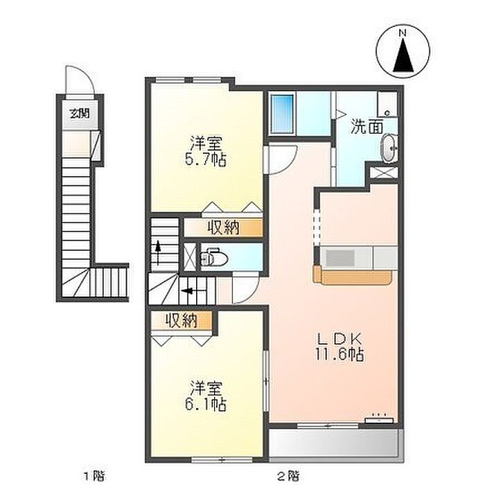 アップウェスト 2LDK/2階