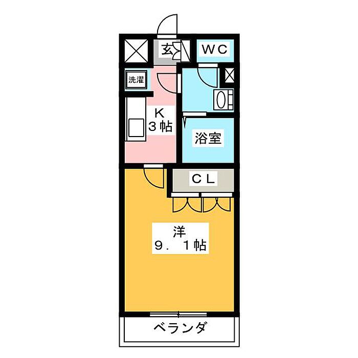 グリーンヒルズ 1K/2階