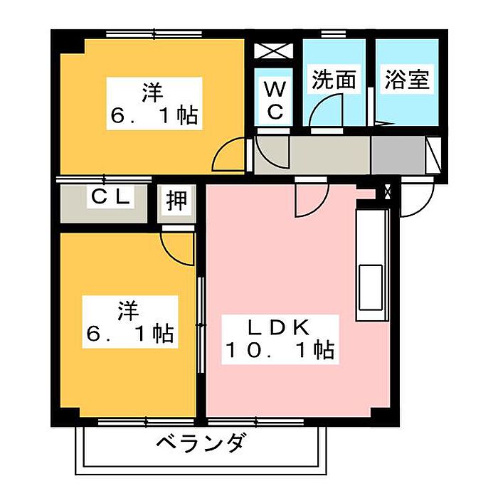 リビオン下沖D 2LDK/2階