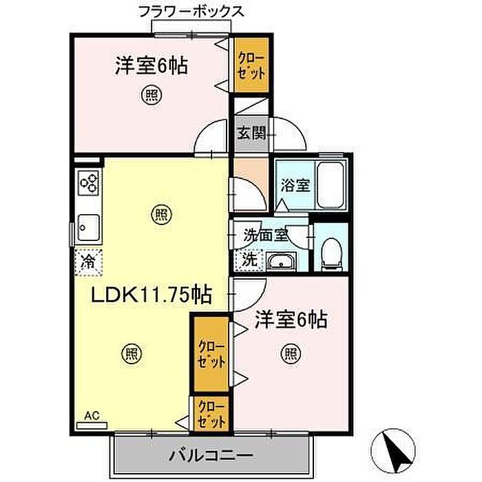 ウエストバンブーβ(B棟) 2LDK/1階