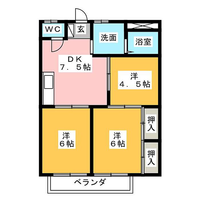 フレンドリータウン B棟 3DK/2階
