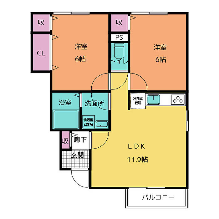 サンライズヒルズD 2LDK/1階