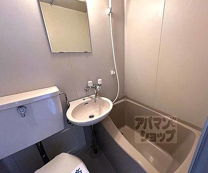 2口ガスコンロ設置可能、ベランダには洗濯機も設置可能です。同志社大学、立命館大学の学生さん大歓迎です。京都の賃貸ならアパマンショップにお任せください。「こちらの室内写真は同じ建物内の別のお部屋の参考写真となります」