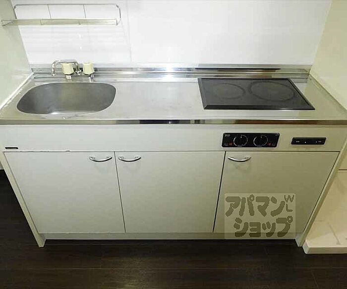 2口のラジェットヒーター付きのキッチンでしっかりとした調理も可能です。立命館大学生が特に通学と日常生活のしやすい立地で買い物や飲食店に困ることの無い立地です。立命館大学生のお部屋探しはアパマンショップ北大路店まで