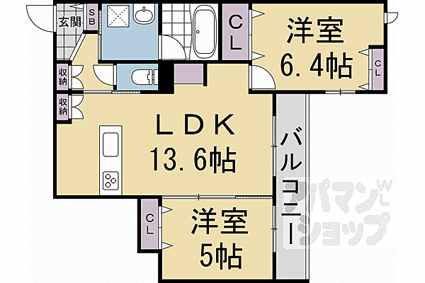 京都市右京区嵯峨広沢南下馬野町 マンション 2LDK/2階