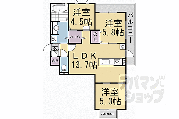 京都市右京区西京極宮ノ東町 アパート 3LDK/3階