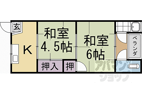 京都市西京区樫原六反田 アパート 2K/2階