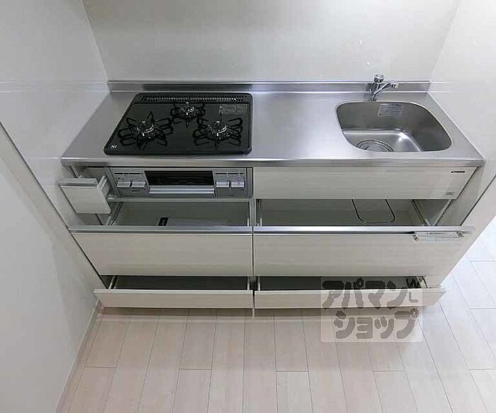 内装はホワイト基調なお洒落なお部屋です。3口グリル付システムキッチン、水回りは大変キレイです。 お問い合わせはアパマンショップ西院店までお待ちしております。京都の賃貸ならアパマンショップ京都にお任せ下さい