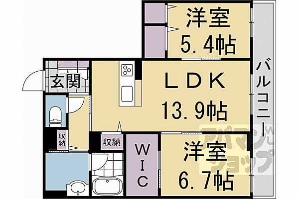 京都市西京区下津林北浦町 アパート 2LDK/2階