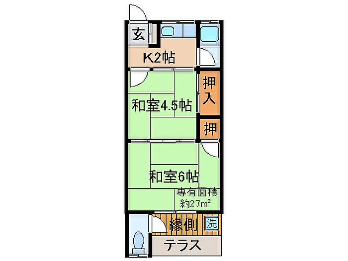 宇治市木幡桧尾 アパート 2K/1階