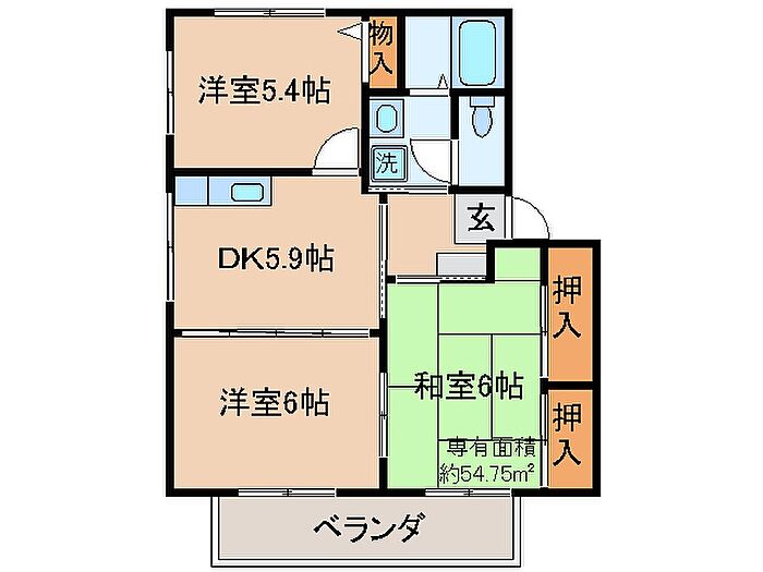 城陽市寺田島垣内 アパート 3DK/2階