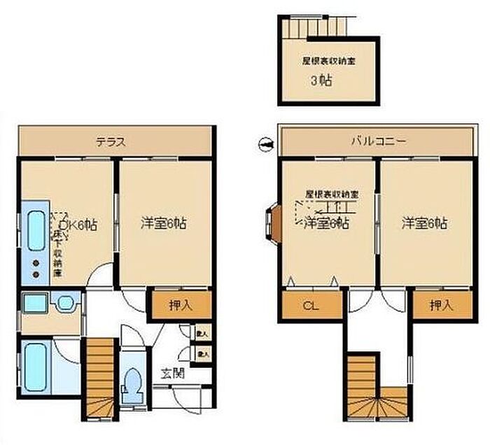 川崎市多摩区中野島1丁目 テラスハウス 3DK/2階