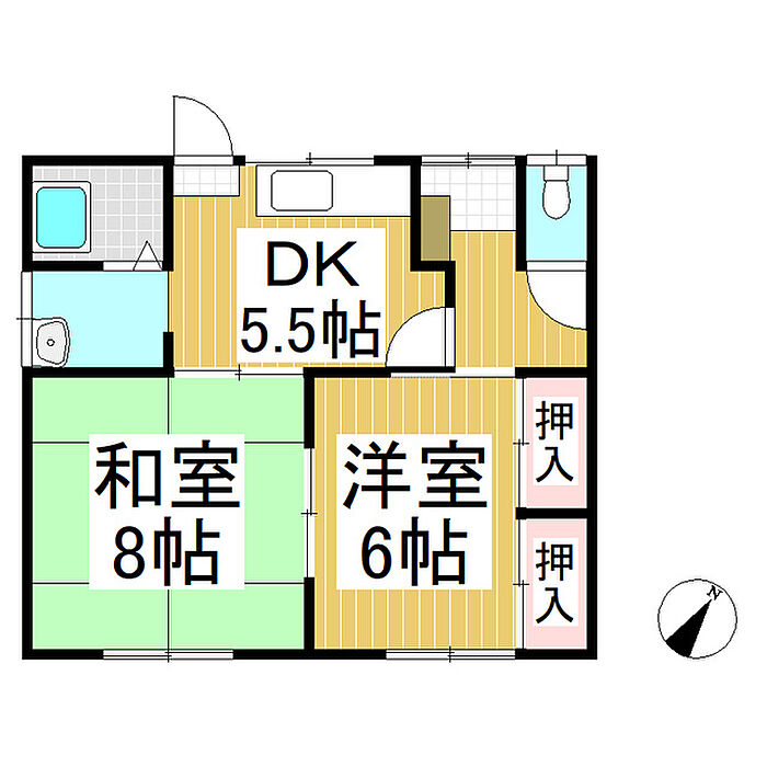 旭ハウスC・D棟 D 2DK