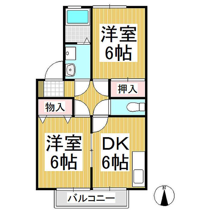 ラ・アンソレイユB 2DK/2階