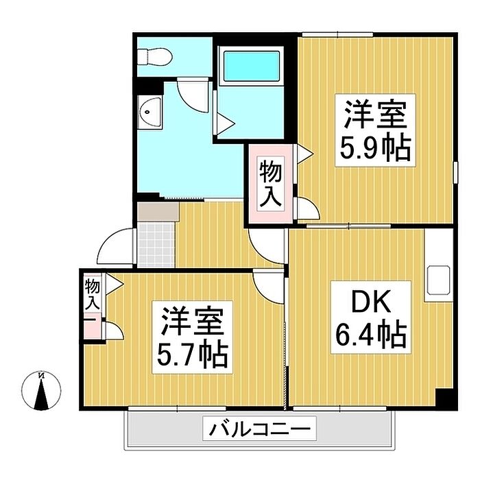 シャーメゾンWING B 2DK/2階