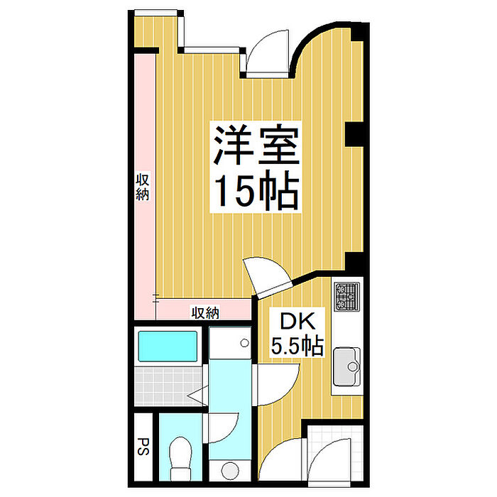 都市ガス 広い1DK 大型収納