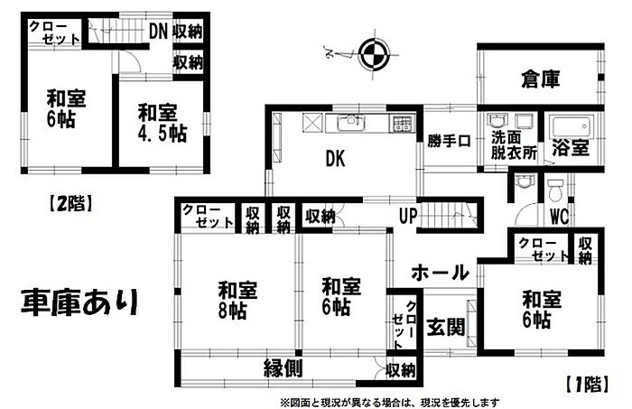 現状渡し+2,000円建物道路から見て左側に駐車スペース