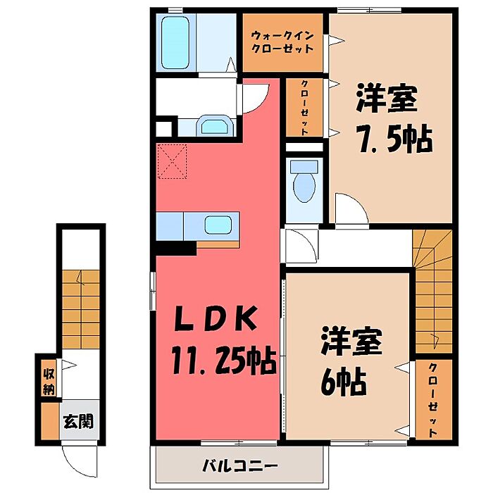 栃木市大平町富田 アパート 2LDK/2階