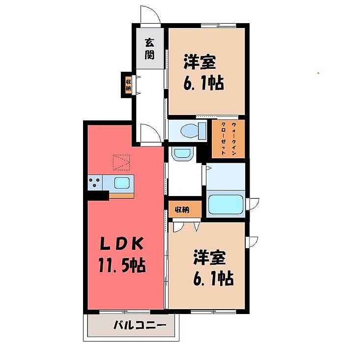 筑西市新治 アパート 2LDK/1階