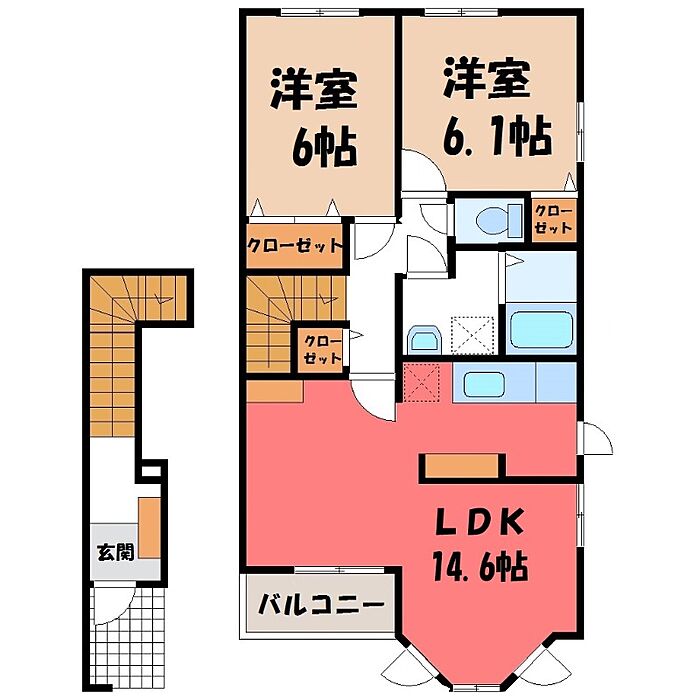 筑西市下川島 アパート 2LDK/2階