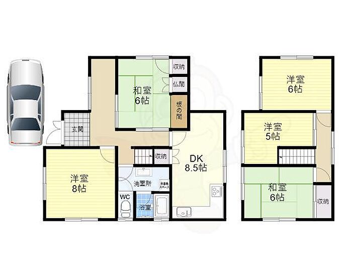 奈良市二名3丁目 一戸建て 5DK/1階