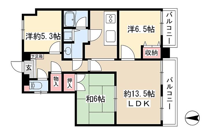 ダイアパレス東別院第2 3LDK/5階