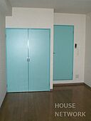 オートロックや敷地内ゴミ置き場も魅力。水色がアクセントのお部屋です。住宅街にたたずむ落ち着いた雰囲気の2階建てマンションです。 民泊不可 空き予定(2026年5月末入居可)