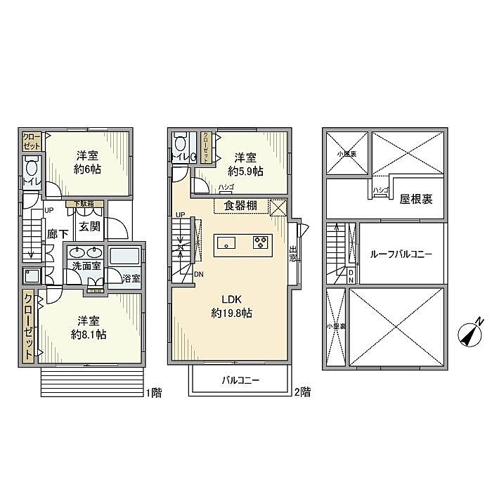 2路線利用可アクセス良好 駐車場付きの戸建 ルーフバルコニー ダブルシンク 宅配ボックスあり