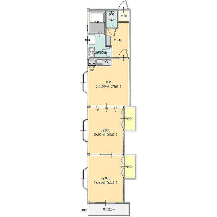 コーポプラトウII 302 2DK/3階