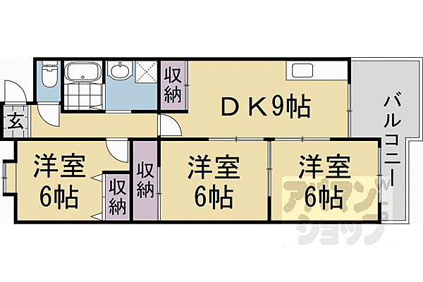向日市 東向日エリアの3LDKマンションです。敷金、更新料ナシ。嬉しい3点セパレートなど充実の設備。光ファイバー対応しています。