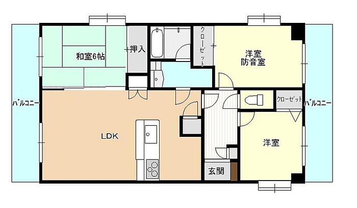 3LDKの分譲賃貸マンション。5階南向き・角部屋で陽当り良好です。1部屋防音室があります。