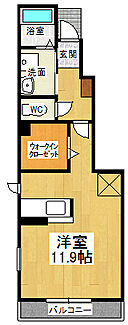 たっぷり収納できるWIクローゼットが魅力的なワンルーム。