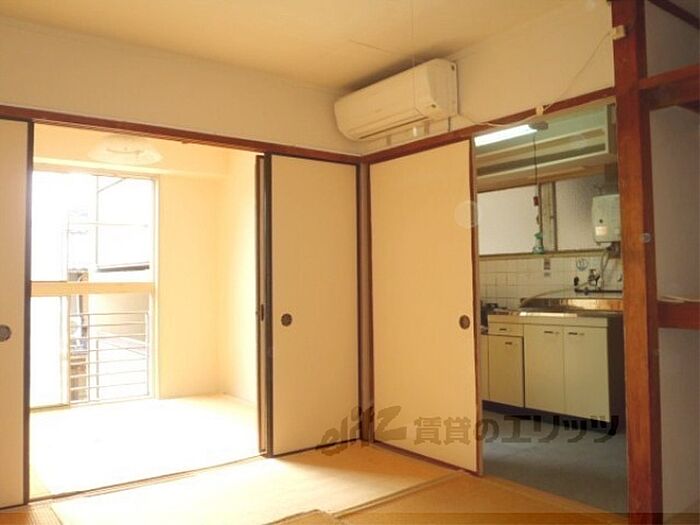 中京区、御所の西側にある賃貸マンション。お部屋は2Kの和室ですよ。お風呂とトイレは別です。スーパーフレスコ約250M。地下鉄烏丸線丸太町駅、東西線二条城前駅まで徒歩で行くことができますよ。・インターネット無料