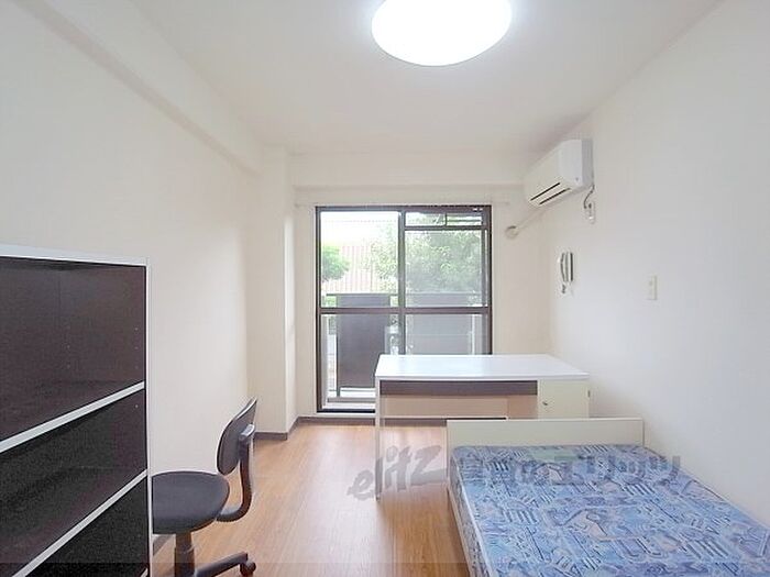 京都芸術大学まで自転車で7分ほど。学生専用で家具・家電付きのオール電化賃貸。オートロック付きです。2階部分のお部屋でキッチンは1口の電化コンロ付き、洗濯機は置けませんがラコインランドリーがあります・光ファイバーインターネット接続可