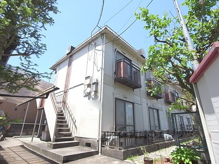 閑静な住宅街にあるインターネット無料の賃貸ハイツ。2階部分のお部屋です。キッチンは2口ガスコンロが設置可能、洗濯機は共用廊下に置けます。最寄のスーパーやドラッグストアは修学院の駅すぐで徒歩10分ほど。・インターネット無料