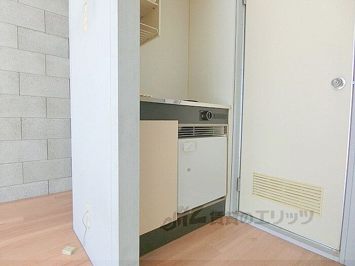 冷蔵庫付いています。京都大学まで徒歩4分、芸術大まで自転車で7分の賃貸物件です。出町柳駅までは自転車で7分。京阪電車で祇園四条駅まで5分です。コンリート打ちっぱなしの室内・外観です。