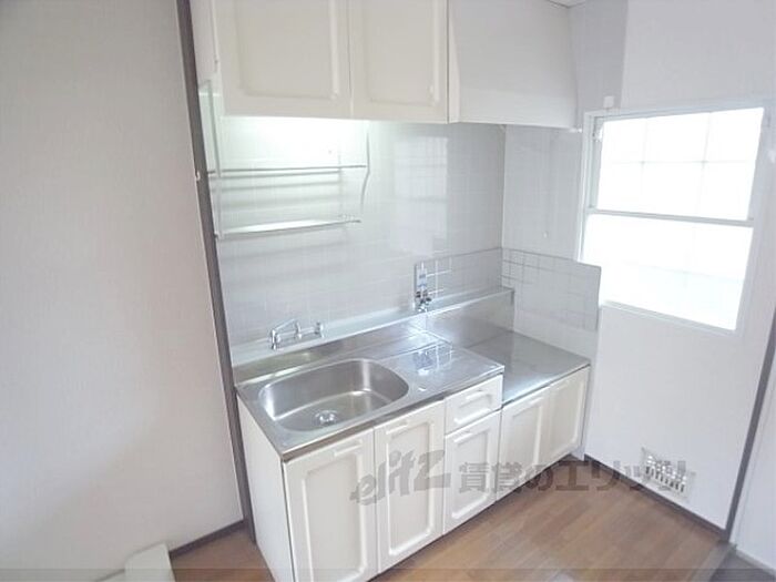 花園大学まで自転車で約8分、立命館大学までは約15分。6帖ですが、大きな収納があるのでお部屋は広々。キッチン部分も広くて使いやすいですよ。2口ガスコンロが設置可能。静かな住宅街にあります。・光ファイバーインターネット接続可