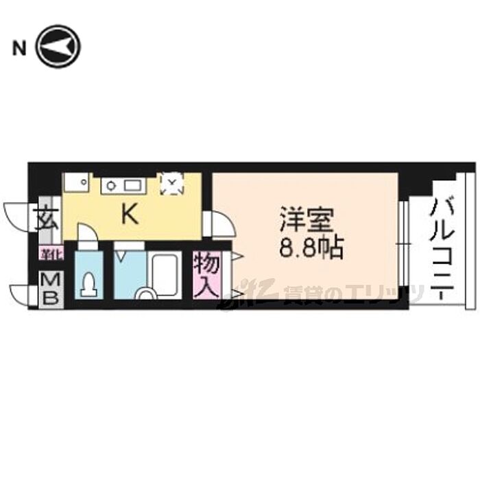 ハウスセゾン朱雀大路 1K/9階