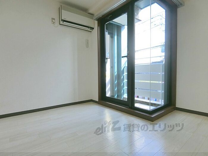 オートロック付マンションです。ベランダは南向きで、通り沿いのため日当たりは良好。マンションの隣にスーパーがあり、コンビニやユニクロも徒歩3分圏内と買い物とっても便利です。今出川駅まで自転車で約8分。 ペット相談条件:小型犬・猫どちらか相談可能(条件変更有)・インターネット無料・その他(月額):450円