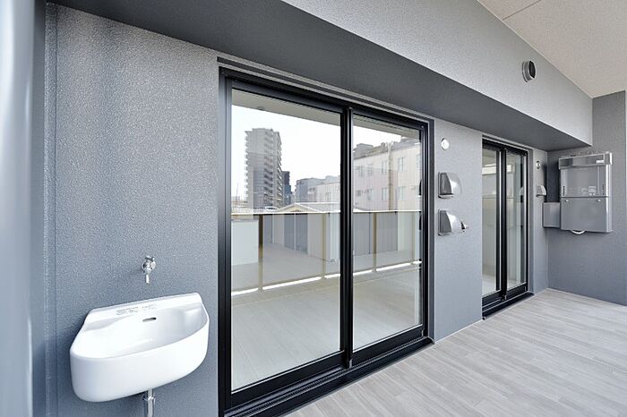 入居者専用ラウンジ(リモートワーク対応)・専有部スマートロックビットキー対応(エントランス顔認証セキュリティ導入)・トリプルセキュリティ・カーシェア対応・トランクルーム(有料)・洗車スペース・24時間ゴミ出し可能・有人管理・ガス衣類乾燥機(幹太くん)導入・食器洗浄器付キッチン