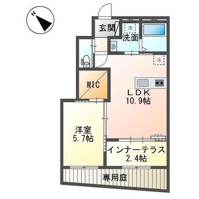 インナーテラスに続く専用庭付きの1LDKです。