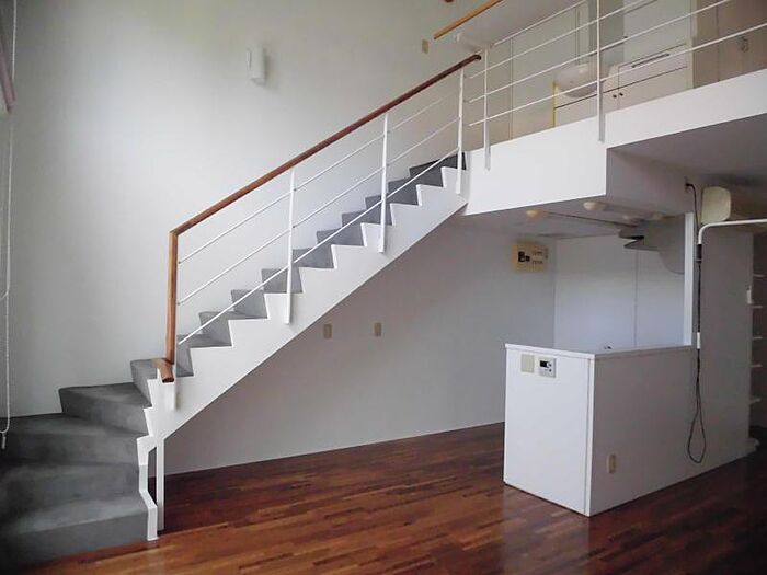 吹き抜けのあるオシャレな1LDK。リビングが広く大型ソファーも置けます