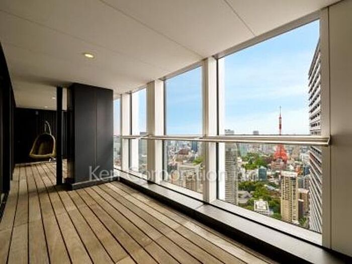 南東向きでリビングからは東京タワービュー、全室を繋げるワイドスパンの取れたバルコニーは暮らしにゆとりと楽しみを与えます。7帖の部屋はクローゼットルームになっております【家具付き住戸】