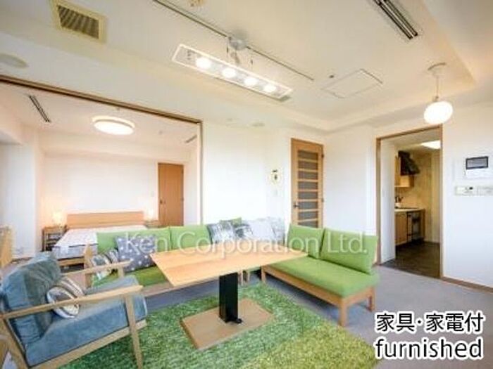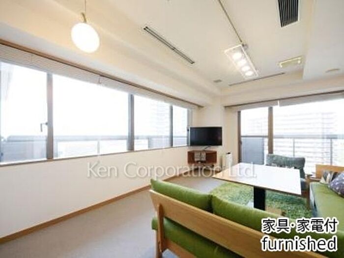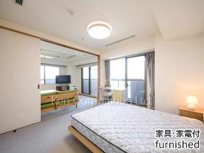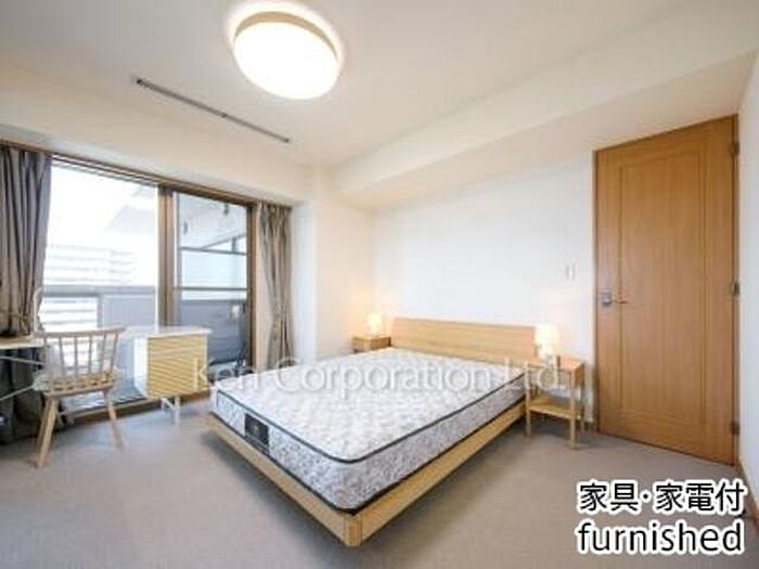 家具・家電類一式設置済住戸。電気・水道・給湯・空調・インターネット・週一回のハウスキーピング、リネン交換有り。