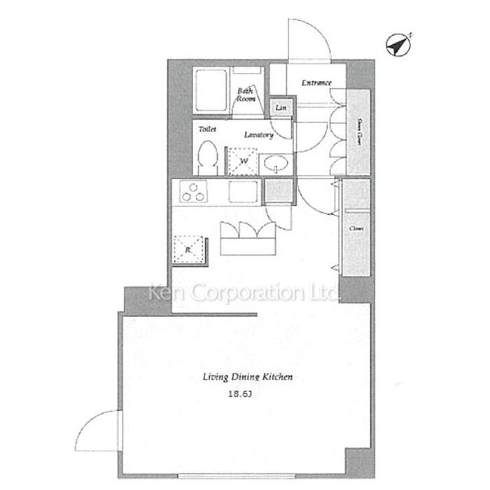 南東向き・角住戸の明るい1R。間仕切り壁で空間をゆるやかに分け、快適な暮らしを実現。港区南麻布アドレスで、都心の利便性と落ち着きある住環境を両立。